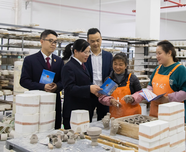 何秋花进企业开展普法宣传。