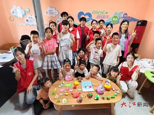 “我想画我家的房子,还有院子里的花。”一个孩子轻声说道,笔下的画面逐渐清晰起来。另一个孩子则画了一片星空,星星闪烁,仿佛在诉说着他对未来的憧憬。绘画活动结束后,孩子们兴奋地展示着自己的作品,脸上洋溢着满满的成就感。随后,实践团的同学们组织孩子们将黏土作品和绘画作品整齐地摆放在桌上,大家一起合影留念。孩子们灿烂的笑容与五彩斑斓的作品交相辉映,定格成了一幅温馨而美好的画面。