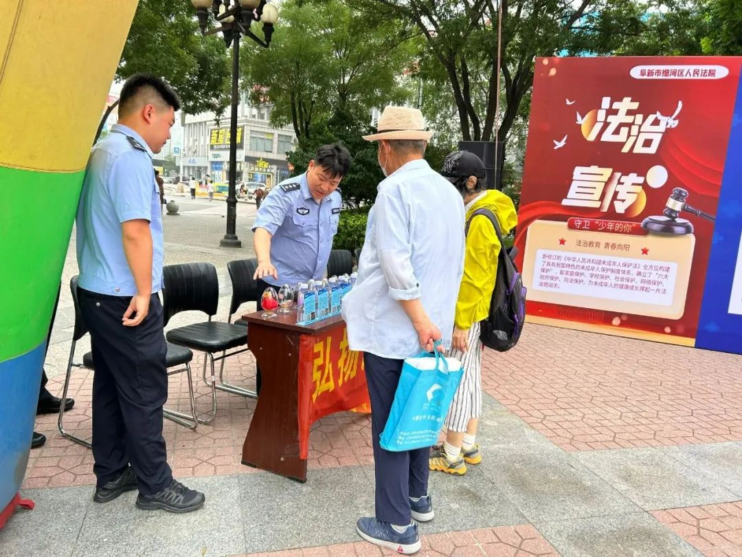 活动现场,法官向群众讲解了《中华人民共和国未成年人保护法》六大保护体系,检察官向未成年人传递法律知识和道德观念,以预防未成年人违法犯罪行为的发生;民警揭露“诈骗电话”等电诈套路,展示毒品模型,讲解毒品危害;区应急管理局传授火灾逃生、安全生产等安全技能;律师针对婚姻家庭、劳动纠纷等法律问题,为群众提供一对一免费咨询。本次活动共发放宣传资料1500余份、吸引1800余名群众参与,解答法律咨询百余人次。