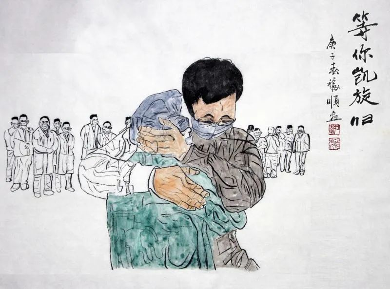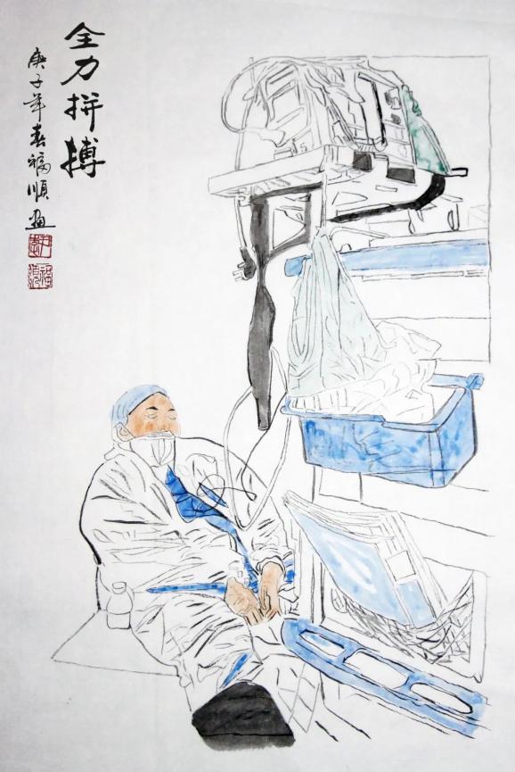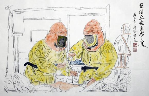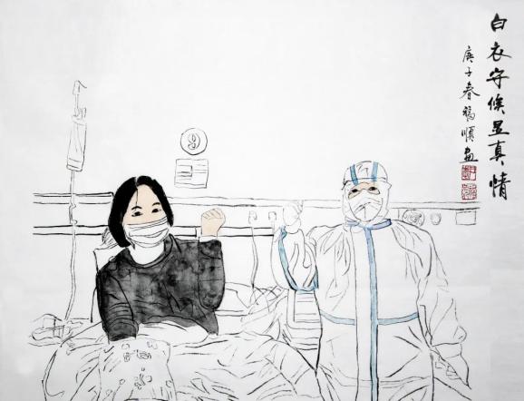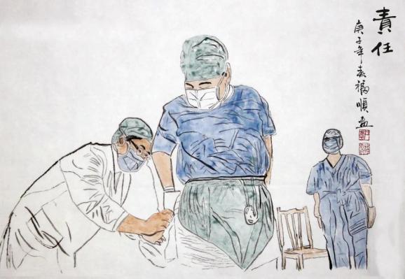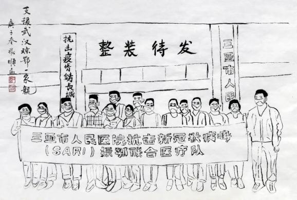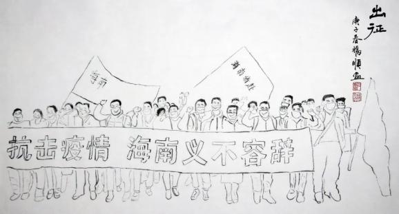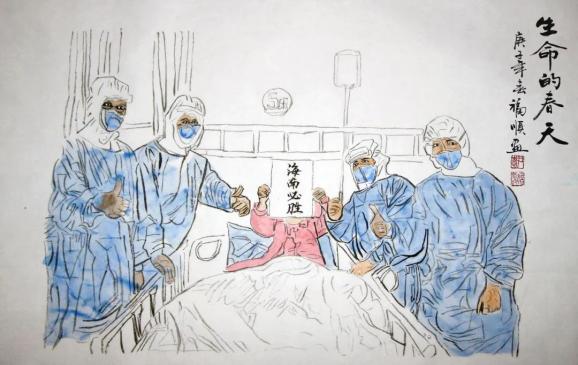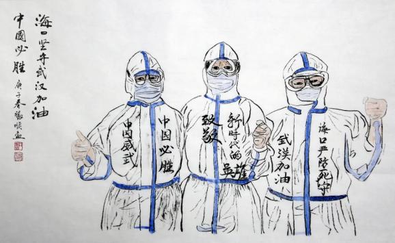 海南省文联副主席,海南省政协常委、政协书画院执行副院长李福顺先生用心中的爱、手中的笔,以书画创作方式记录海南省各级领导干部、一线医护人员在抗击疫情中感人的瞬间,讴歌战斗在战疫前线最美的人,凝聚起抗击疫情的强大精神力量。