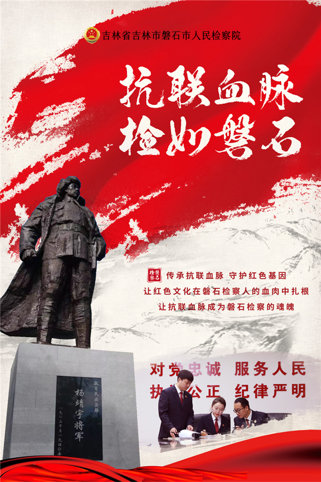 品牌内涵:“抗联血脉· 检如磐石”文化品牌立足吉林省磐石市红色文化资源,结合磐石市检察院实际,深挖红色资源,提炼抗联精神,成立“抗联血脉· 检如磐石”文化育检建设领导小组,以支部为单位打造红色学习单元,加强互相学习和交流碰撞。通过定期开展重走抗联路、重学红色历史等活动,深入开展“我为群众办实事”实践活动等,将抗联精神与检察工作紧密融合,推动检察工作高质量发展。