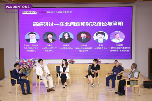 在“东北问题和解决路径与策略”专题研讨环节,由大成大连办公室执行主任尚永海主持,对话大成吉林办公室主任于耀武、大成高级合伙人杨国华、大连海事大学法学院教授孙良国、大成高级合伙人李涛、中国船舶集团大连造船总法律顾问/首席合规官邓德君等专家学者和行业精英,展开深入探讨。