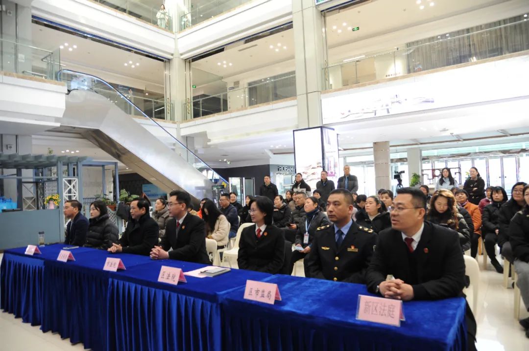 揭牌仪式结束后,淮安中院民一庭、清江浦区法院清河新区法庭联合在商场内摆出“普法摊位”。干警向商家和消费者发放普法单页、《漫说民法典》等资料,解答大家提出的家居购物、建材质量、售后保障等问题,教育引导买卖双方增强法律意识,提高依法维权能力。