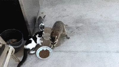 杂食动物一般更喜欢探索陌生的东西,因此相比喵汪星人,干脆面君(小浣熊干脆面)确实可能更好奇别人碗里的饭,它们也会因为“语言不通”而无视其他动物群体的进食次序。当然,也可能是浣熊偷东西的行为比较有趣,所以被拍摄下来的机会也比较多。