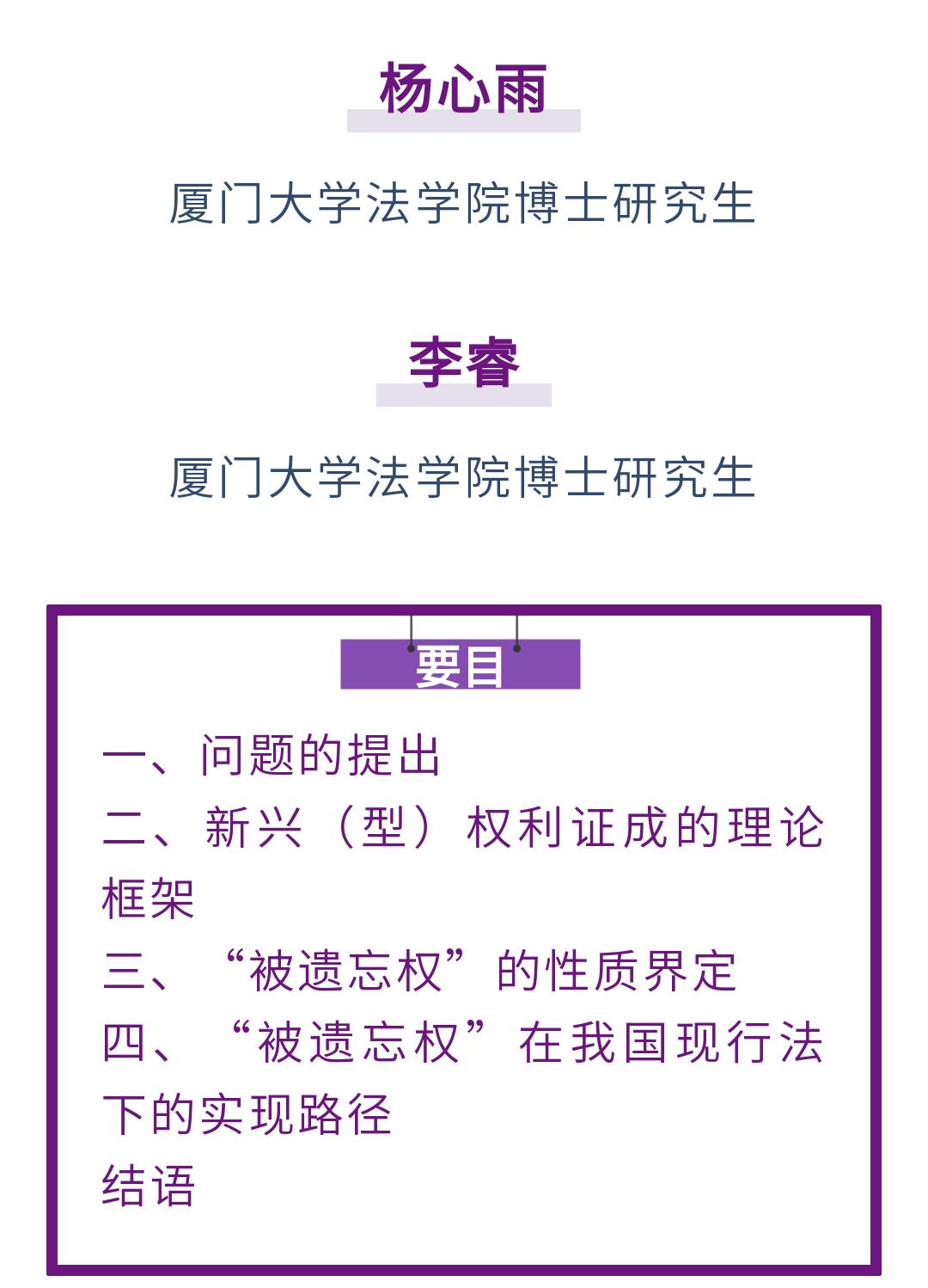 原标题:《杨心雨 李睿|“被遗忘权”的定位与实现——以新兴(型)权利的证成标准为视角》