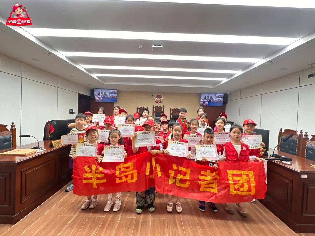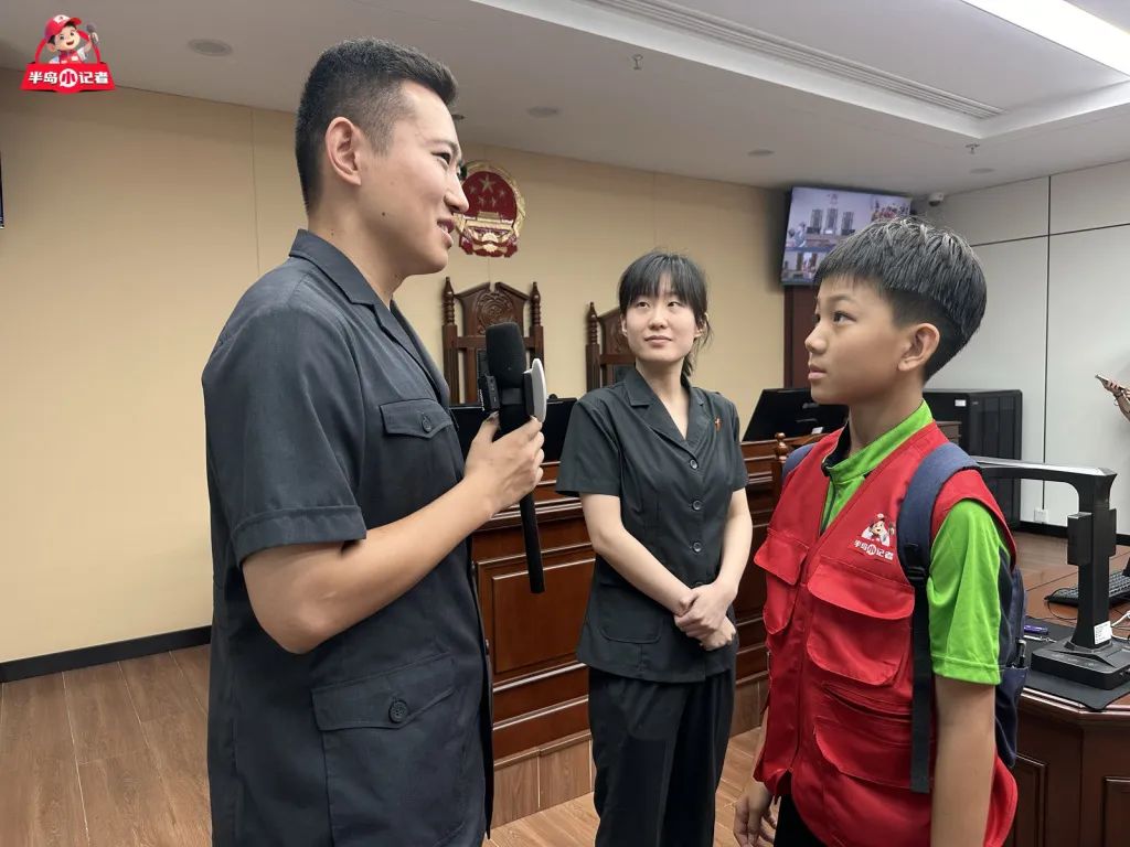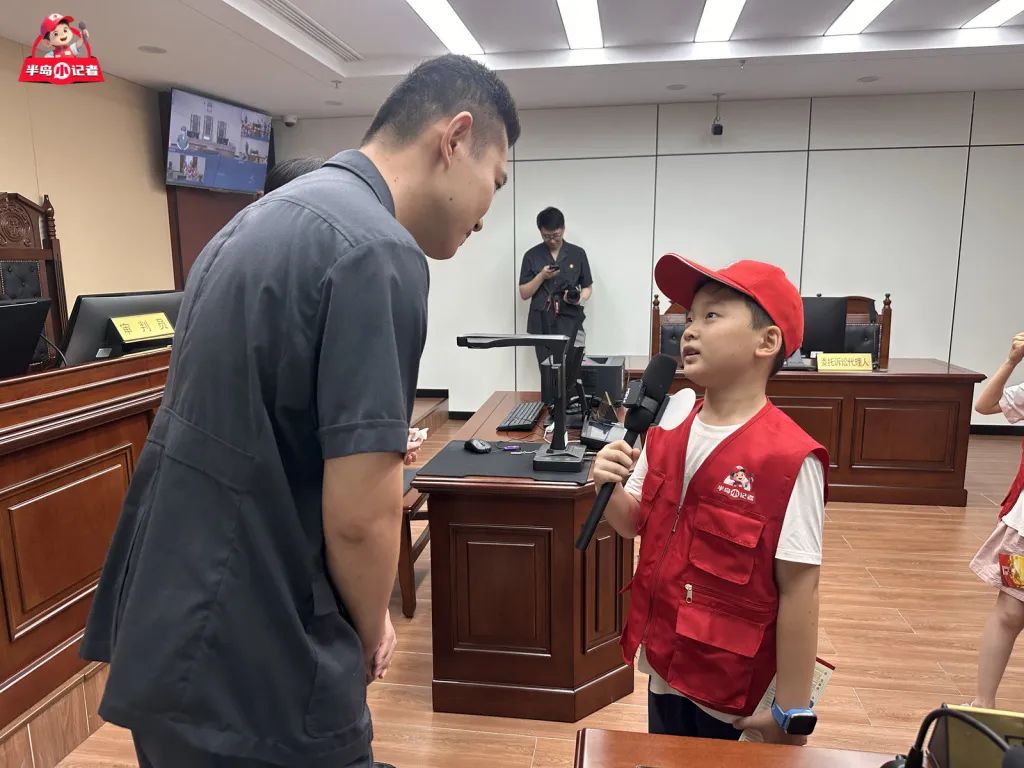 活动尾声,法庭工作人员向每位“小探索家”赠送了图文并茂的《民法典》宣传手册,鼓励他们学习与生活息息相关的法律知识。孩子们抓住机会,就心中的疑问采访了法庭工作人员,问题虽充满童真却透露出对法律的初步思考。最后,大家带着满满的收获与对法律的敬意,在法庭前合影留念,为这次富有意义的法治启蒙之旅画上圆满句号。