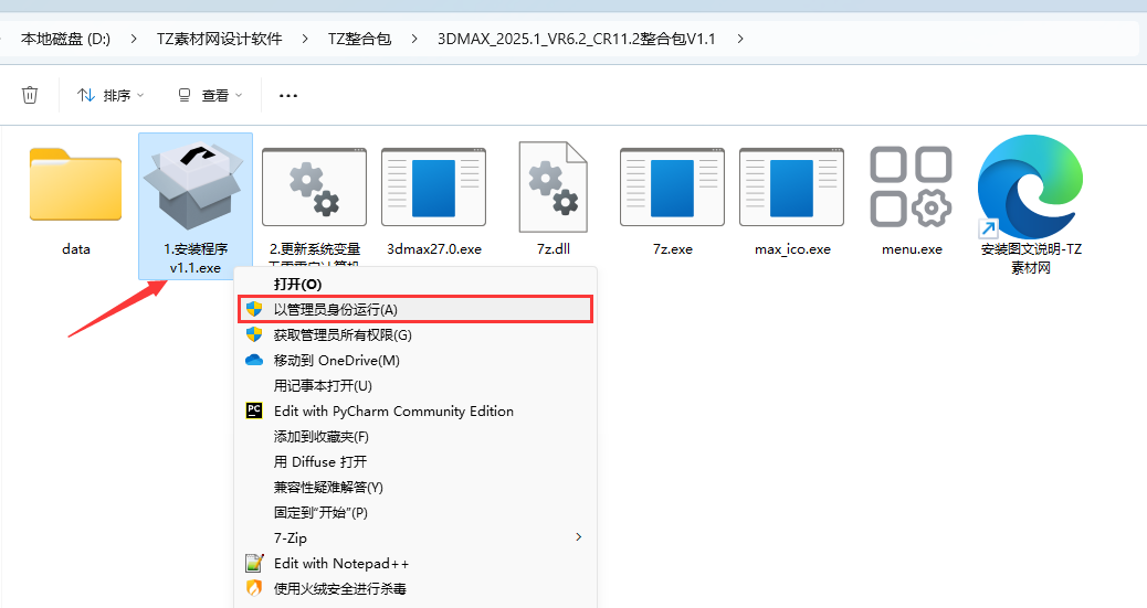 必须用“【右键管理员的方式运行】”“1.安装程序v1.2.5.exe”否者可能安装会卡住或者无法创建中文版本max。