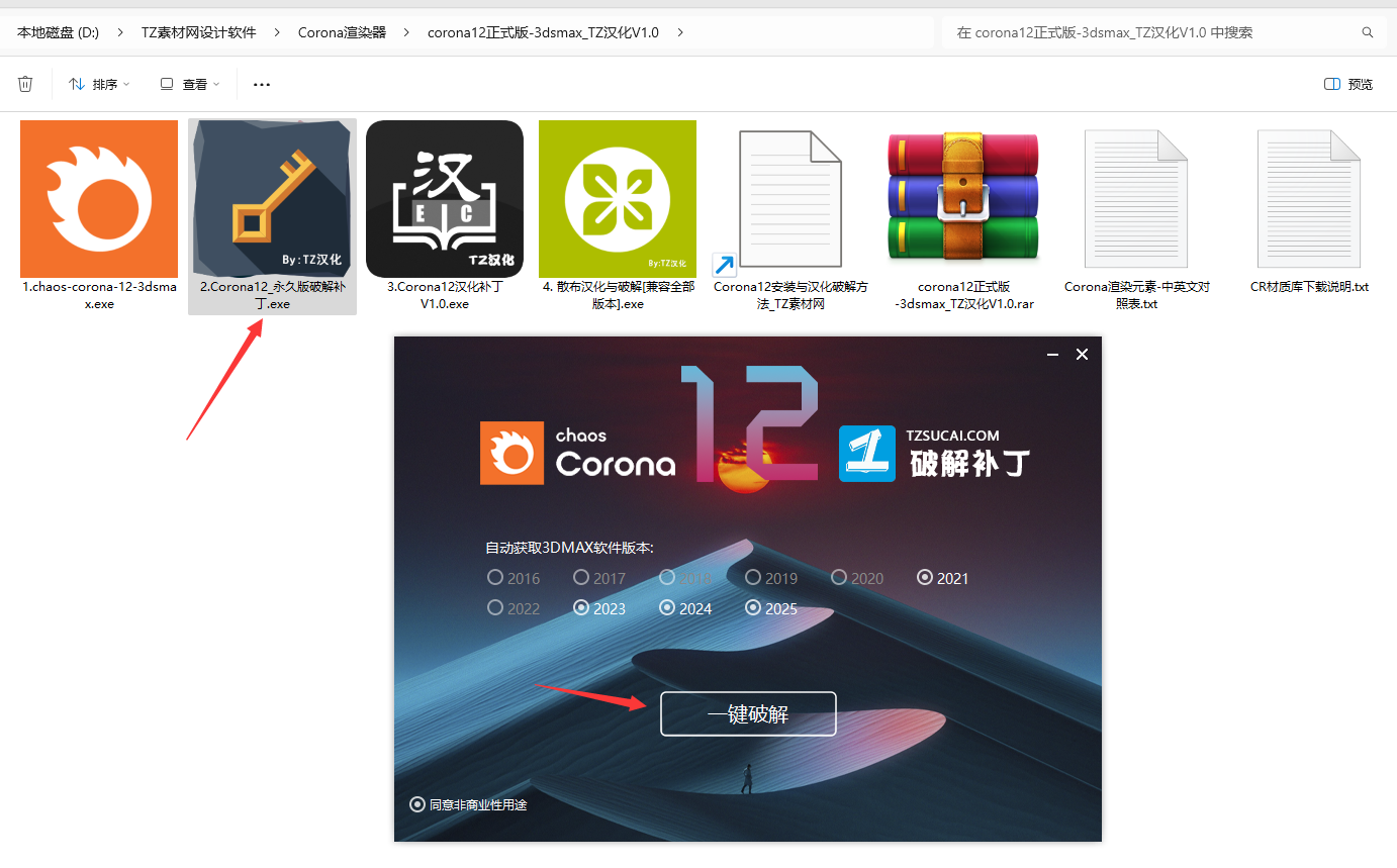 双击2.Corona12永久版破解补丁.exe点击一键破解