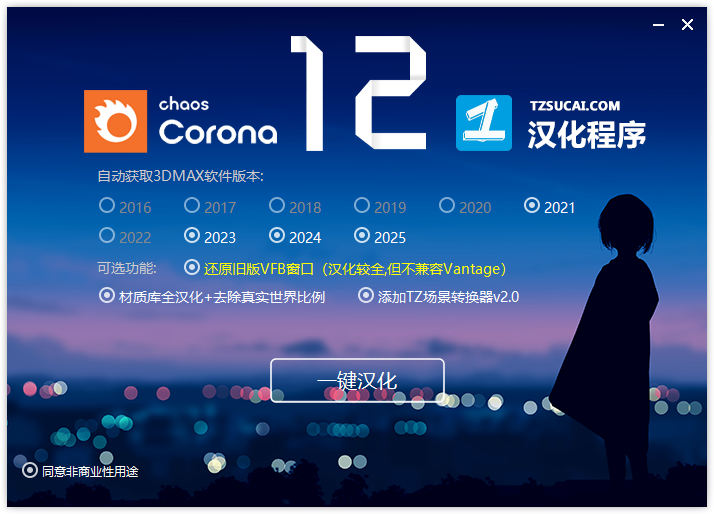 双击3.Corona12汉化补丁.exe点击一键汉化,即可完成渲染器汉化