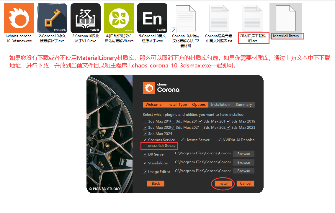 【不需要CR材质库】如果您没有下载或者不使用MaterialLibrary材质库,那么可以取消下方的材质库勾选。