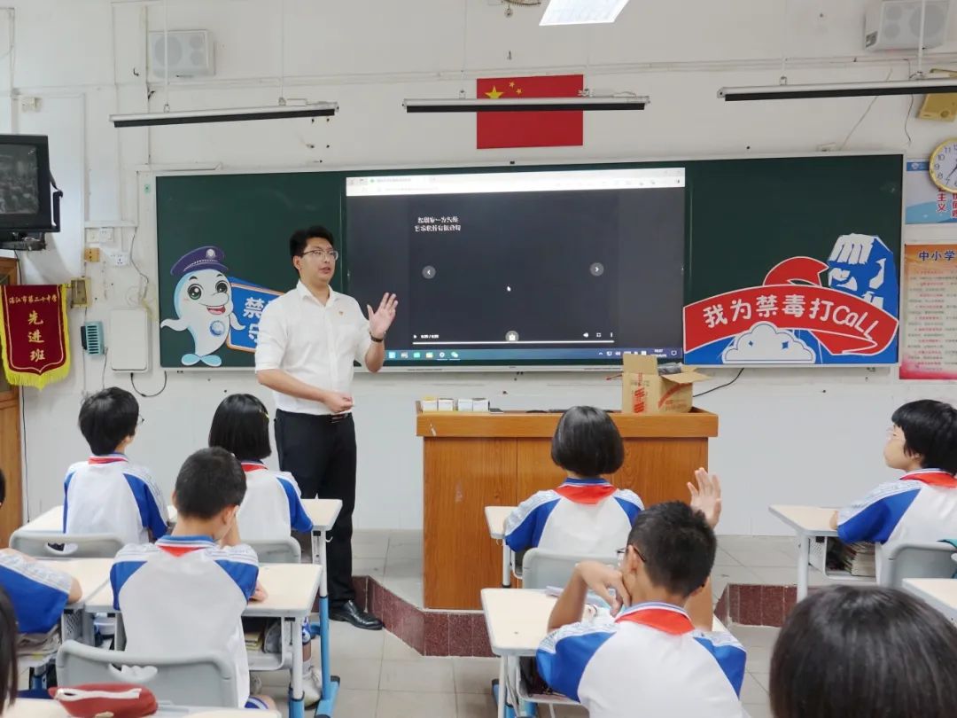 江浩明指出,近年来,在湛江市委市政府和市禁毒委坚强领导下,全市各级各部门紧紧围绕习近平总书记关于禁毒工作的重要指示精神,勠力攻坚,奋力拼搏,打出“打、防、管、控、建、宣”禁毒系统治理组合拳,构建了湛江特色的毒品治理体系。他强调,随着社会发展和科技进步,毒品的形式愈发多样,手段愈发隐蔽,禁毒普法进校园非常必要、意义重大。他呼吁广大青少年,要深刻认识毒品危害,时刻保持警惕,主动学习禁毒知识,筑牢防毒拒毒思想防线;要增强自我保护意识,坚决抵制毒品诱惑,不涉足可能涉毒的场所,不结交有不良嗜好的朋友;要树立正确的人生观和价值观,追求健康、文明的生活方式,积极参与禁毒宣传活动,共同抵制毒品。