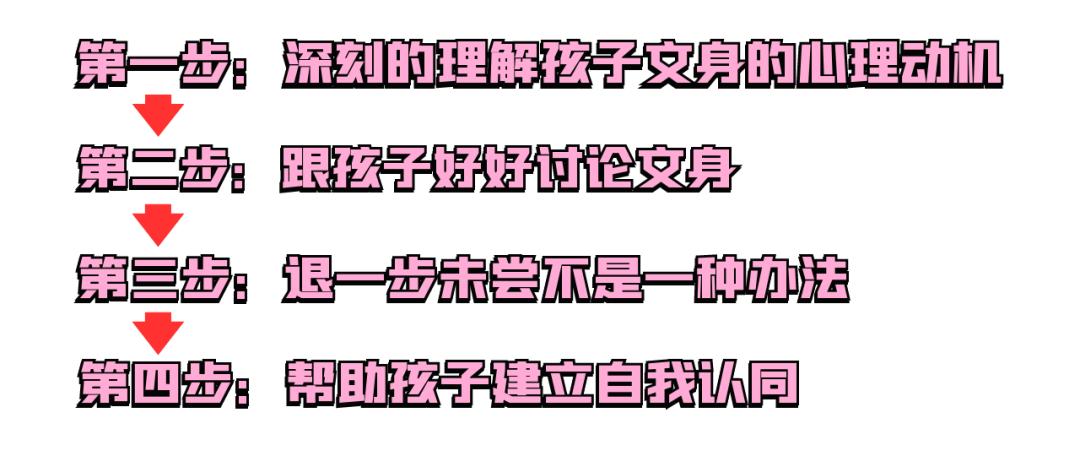 在孩子成长的过程中,帮助孩子建立良好的自我认同,当孩子能在日常的生活中感受到自我的价值和自我个性的彰显,可能孩子就会以更好的方式来并表达自己,而不是选择文身。