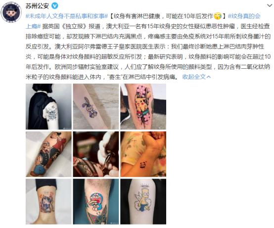 未成年人文身造成的伤害不可逆转。图片来自@苏州公安