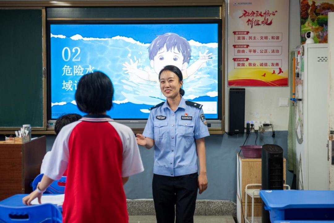 “水库河流看似平静,实则暗藏漩涡、暗流等致命危险,大家一定要注意安全!”民警紧抓暑期节点,针对夏季进入溺水事故高发期的情况,用鲜活案例为学生们演示了野外河流的各种危险,展现了各种严重的后果,强烈震撼了在场的学生们。课堂之上互动满满,民警还给学生们讲解了科学的自救与互救的方法以及如何正确使用救生器材,全方位提升了孩子们的安全防范意识与应急避险能力。