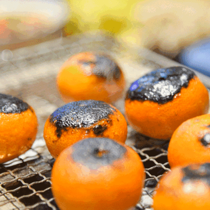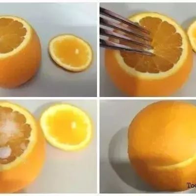 首先将1-2个橘子洗干净,在40℃-50℃温水中浸泡约1分钟。然后将橘子擦干(至表皮完全无水分),放入微波炉内,热1-2分钟至微焦。