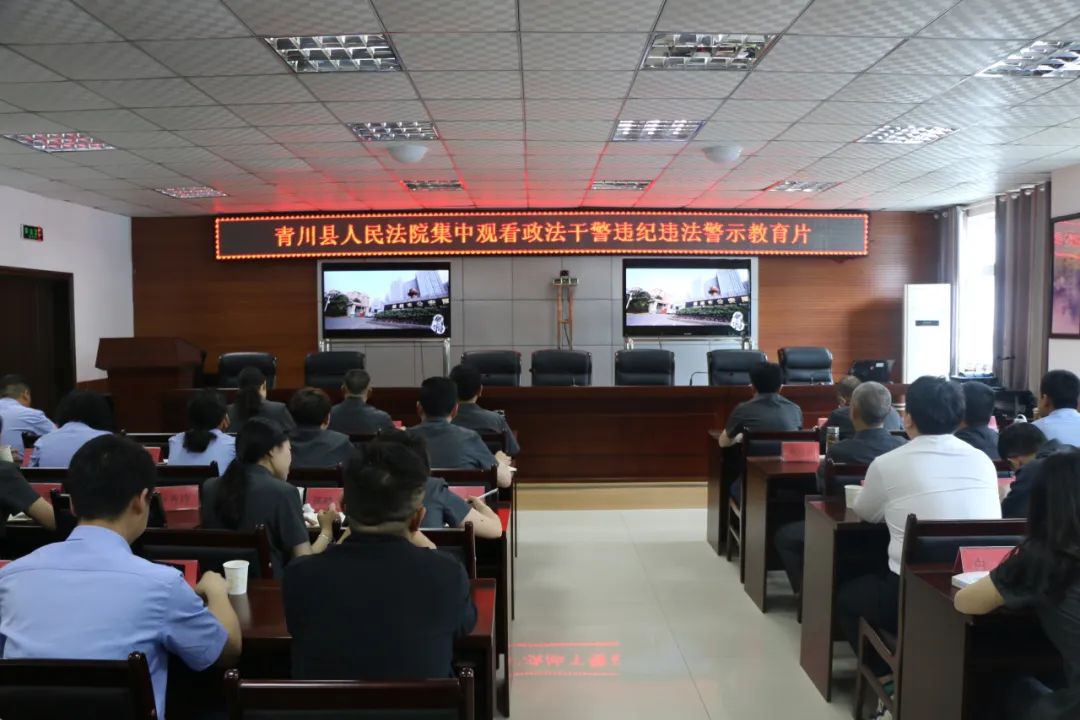 青川县人民法院组织干警集中观看政法干警违纪违法警示教育片,影片以案明纪,如声声警钟,振聋发聩。通过观看反面案例,法院干警们直面违法乱纪“苦果”,进一步筑牢思想防线,坚守廉洁底线,维护司法公正与纯洁。