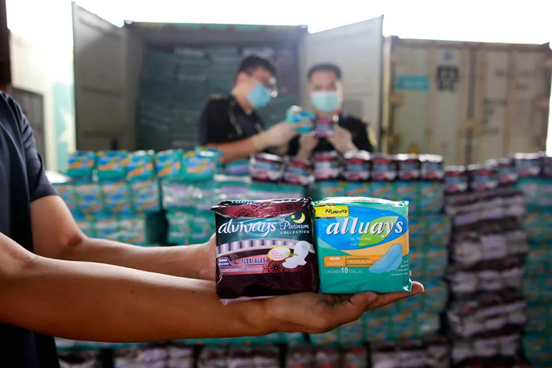 2020年8月26日,厦门海关通过对舱单航线数据及报关数据比对分析,发现青岛某进出口有限公司申报出口至南美的某一集装箱货物存在侵权嫌疑。经查验,发现该集装箱中货物为卫生巾,共计151万片,货物外包装使用 “alluays”和“alvivays”标识,上述英文字母在字体、大小比例、布局、艺术化造型等方面与宝洁公司在海关总署备案的“always”商标权在整体视觉效果上十分相似。经调查确认,上述货物构成侵权。随后2个月内,该关连续查获涉嫌侵权卫生巾、纸尿裤等卫生用品7批次、481万片,价值600万元。