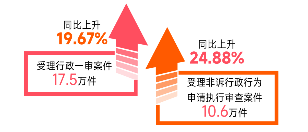 行政案件审判情况。人民法院严格履行监督行政机关依法行使职权的法定职责,支持和保障人民群众依法表达诉求,做深做实行政争议实质化解。受理行政一审案件17.5万件,同比上升19.67%,受理非诉行政行为申请执行审查案件10.6万件,同比上升24.88%。为积极回应人民群众对于政府信息公开的需求,最高人民法院印发《关于审理政府信息公开行政案件适用法律若干问题的解释》,进一步明确案件审查标准,为一体建设法治国家、法治政府、法治社会提供司法服务保障。发布首批涉市场准入行政诉讼十大典型案例,指导各级法院依法妥善审理与经营主体密切相关的行政许可、行政协议、行政允诺、行政处罚等行政案件,支持行政机关依法履行监管职责,监督、纠正侵害各类经营主体合法权益的违法行政行为,依法促进法治化营商环境建设。