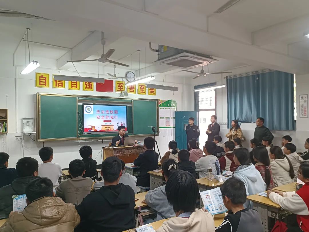“校园安全无小事,这些行为要警惕!”宣讲中,李东旻法官以《民法典》《刑法》《预防未成年人犯罪法》等法律条文为切入点,结合真实案例,剖析了校园中可能威胁人身财产安全的行为,提醒同学们明辨是非,在面对危险时,学会依法保护自己的权益。讲课过程中,同学们踊跃举手互动,气氛活跃,课堂效果反响强烈。