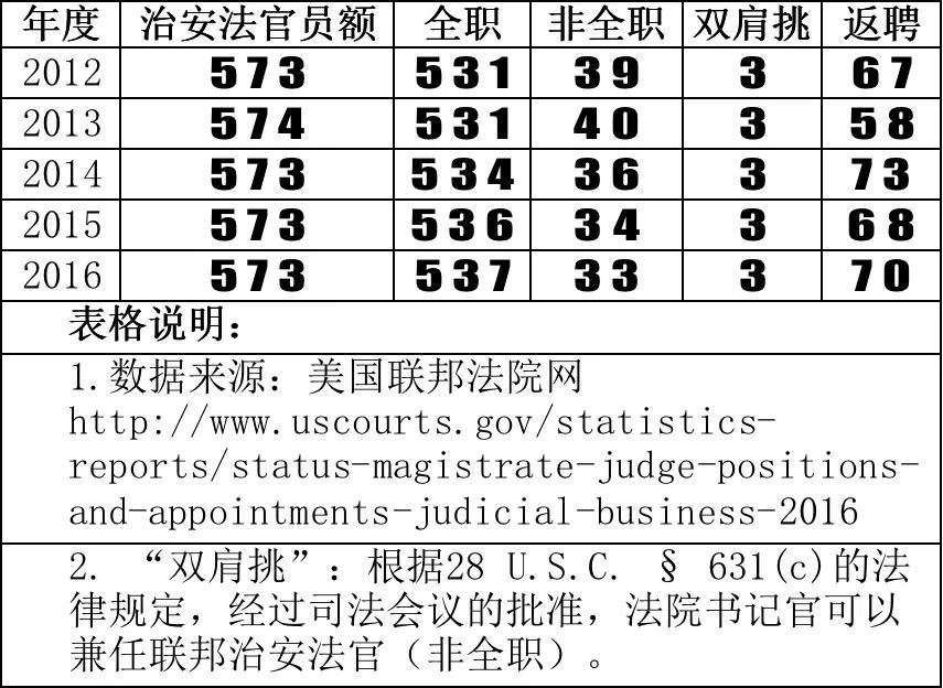 在美国联邦法院网的官方报告《美国司法系统司法事务与专业事务辅助人员》中统计“联邦法官员额”(federal judgeships)时也包含了治安法官。