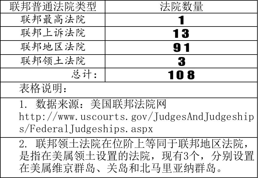 如下表所示,目前美国联邦法院普通法院系统由1个最高法院、13个联邦上诉法院、91个联邦地区法院和3个联邦领土法院构成。