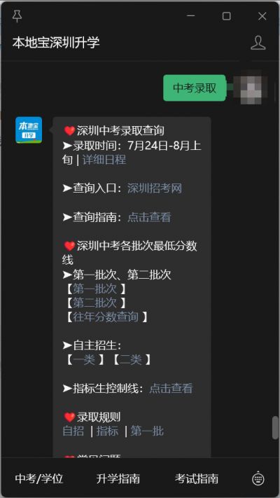 温馨提示:微信搜索公众号【本地宝深圳升学】回复【中考录取】获取2025深圳中考录取结果查询时间+入口、最低分数线、二次填志愿、补录等最新消息