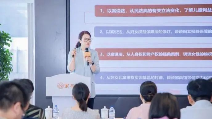 上海家与家律师事务所主任谭芳律师为大家带来了一场主题为“以法之名 护她权益”的法律讲座。