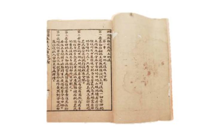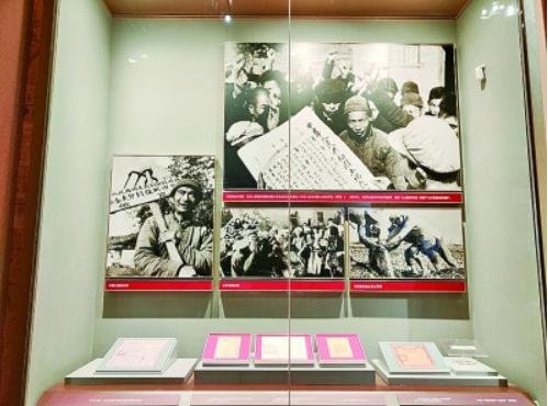 1928年,毛泽东主持制定了党领导下的第一部土地法《井冈山土地法》,以法律的形式首次肯定了农民以革命手段获得土地的权利。1929年,毛泽东主持制定《兴国土地法》,保护了中农的利益。土地革命时期,党领导颁布的土地法律法令,推动了土地革命深入进行。图为展览中的《兴国土地法》文本。
