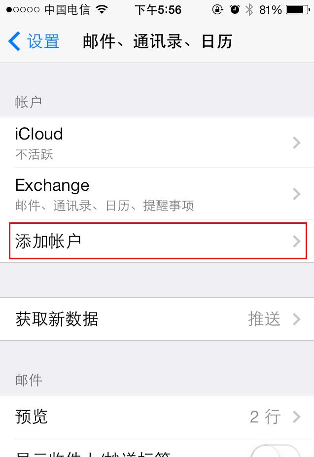 【图2-1】"设置"-"账户"-"电子邮件"