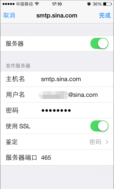 SMTP服务器:smtp.sina.cn