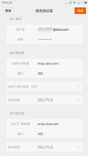 IMAP 服务器:imap.sina.cn