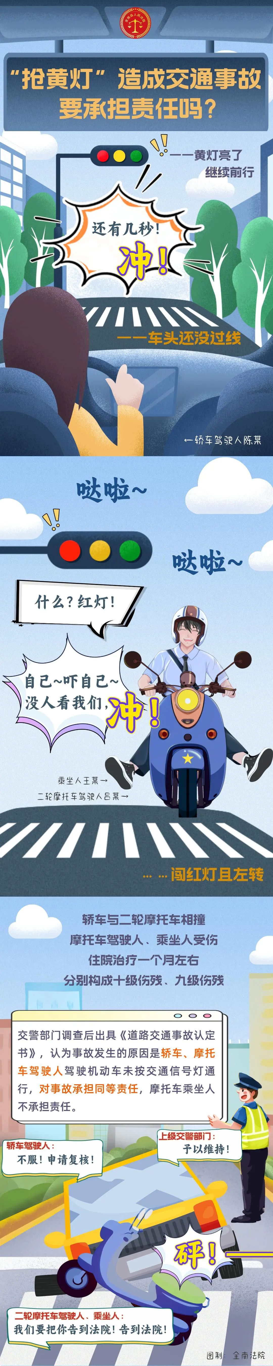 原标题:《“抢黄灯”造成交通事故,要承担责任吗?法院判了!》