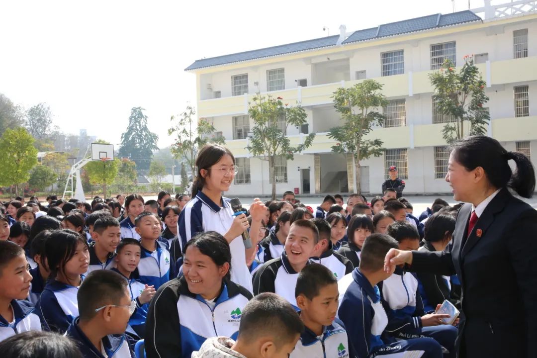 “把法庭搬进校园,不是为了让你们记住冰冷的法条,而是希望你们永远用不上这些法条。”瑞丽市人民法院少年审判庭负责人、一级法官杨丽君对同学们说道。