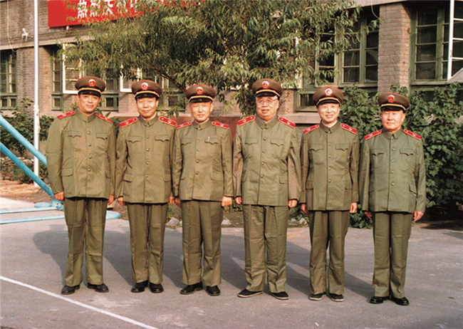 杨易辰同志(左四)与其他最高检院领导着84式检察制服春秋装合影。