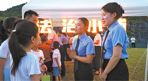 近日,江西省安福县检察院的“法治小铺”开进“福地乡音·青春和鸣”草坪音乐会现场,用法律的节拍为青春旋律谱写新的乐章。活动现场,青年检察官化身“法律主唱”,将法条改编成朗朗上口的“普法RAP”;摆好定制版“正义扭蛋机”,参与者转动机关就能解锁未成年人保护法趣味问答;将“反诈飞行棋”棋盘铺在草地上,让参与者在游戏中学习防范电信诈骗知识。图为该院干警热情接待咨询群众,引导大家参与法治互动游戏。
