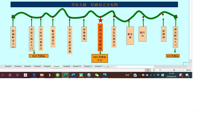 草原天路 具体分布图及沿路各景点位置。东线全长100公里左右,