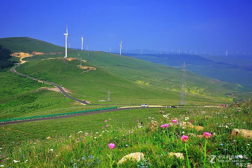 草原天路 沿路都是风车,随处可见的风车, 草原天路 因风电而起,又因天路风景而兴。因为站得高,才能看到最美的风景。风景的组成中,风力发电机(风车)不可或缺,它是人们利用自然的完美产物,它是人们在雄浑优美的百里坝头上留下的时代印记。