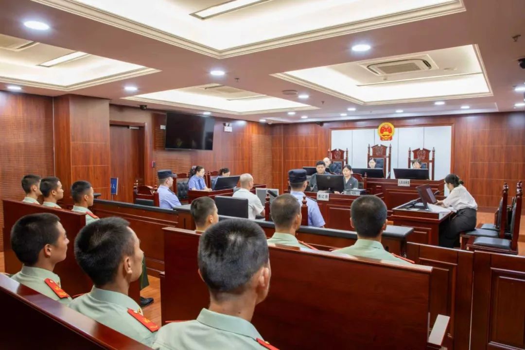 “现在开庭!”随着审判长法槌落下,被告人张某涉嫌故意伤害一案公开开庭审理。受邀旁听的武警官兵们整齐划一地坐在旁听席上认真聆听庭审过程,感受法律的严肃性与权威性。