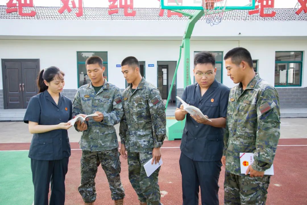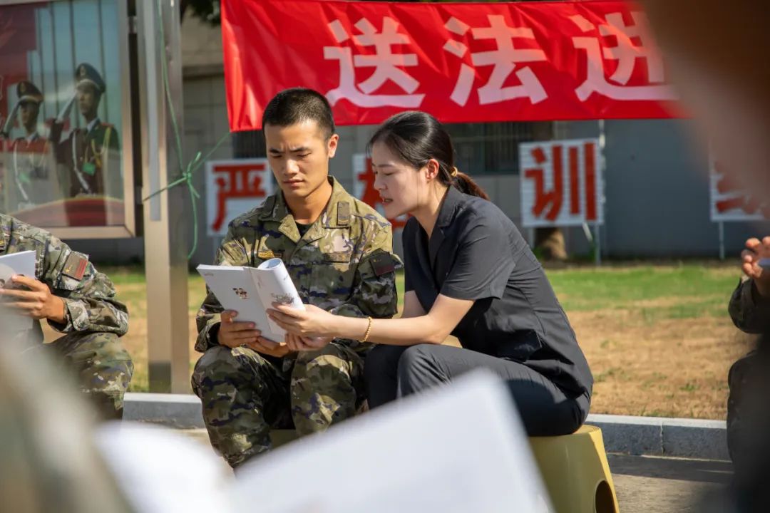 训练场上,法院干警与官兵们面对面交流,通过提供法律咨询、共读民法典等方式,引导官兵将法治思维融入生活,让法律成为守护权益的“随身盾牌”。