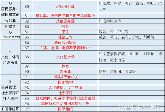 下表总结了所有行业门类和大类。其中有一些大类若只看名称,会产生一些疑问,不知道具体涵盖哪些范围。本表在对应的说明中做了简单解释。