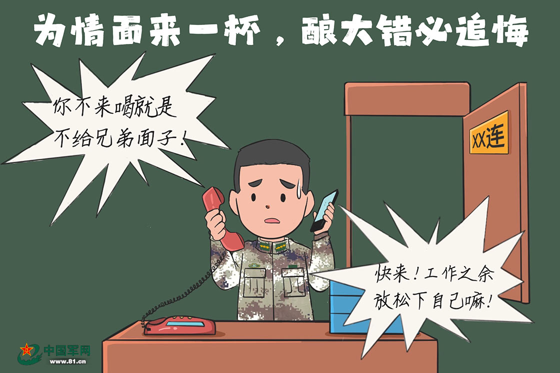 俗话说“感情深一口闷”,这看似“一醉解千愁”的情感需要,“三杯能和万事”的交往需求,实则危害极深、后患无穷。“酒桌文化”不仅伤及个人健康,更容易助长“喝酒办事”的歪风邪气。千方百计钻空子、心存侥幸越红线,顶风冒头违法纪,酒驾醉驾、闹酒酗酒终会害人害己,既危及单位稳定和他人安全,又毁了个人前途和家庭幸福。近日,战略支援部队某部“警示教育专题漫画——预防违规饮酒篇”正式上线,快来一起学习、杜绝陋习!