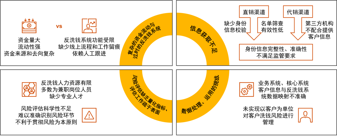 主要体现在信托公司反洗钱管理资源相对紧张,又缺乏充分的外部信息支撑和可落地的方法论参考;自行建立客户评级模型、交易监测模型、机构洗钱自评估模型等存在困难;直接采购系统供应商成品解决方案而未经任何调整,又常常不能完全适用和匹配机构的实际情况;甚至有义务机构错误地认为拥有模型就是已经履职合规,未将监管要求在业务实践中进行有效落实;以及对于合规投入和勤勉尽责底线把握不当,仅仅通过“写报告”的定性风险评估方式难以应对日益严格的监管要求等方面。
