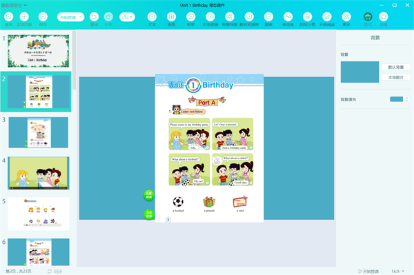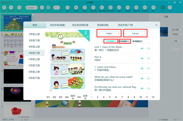 您可以按照教材页码,把整个页面的点读加入到课件中。点读包含了音频的跟读、连读、复读等功能,并且可以在"点读设置"里根据具体的教学需求做设置,极大提高了备课和上课的效率。
