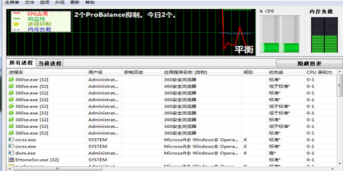 1、界面操作过程中,由于需要实时获取和显示大量信息,因此您可能会看到ProcessLasso图形界面或核心引擎进程CPU利用率达到15%到40%,这是正常的。隐藏或关闭此接口后,ProcessLass的资源占用率将变得很小,并且不会降低计算机的速度。