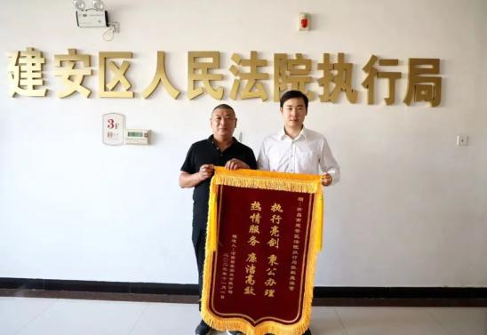 “感谢法官的耐心沟通和调解,帮我要回了欠款”,当事人河南翰春实业有限公司代表刘某连声道谢。11月1日下午,刘某将“执行亮剑、秉公办理、热情服务、廉洁高效”的锦旗送到建安区人民法院执行局法官陈群显手中,表达对区法院及承办法官团队高效办案、司法为民工作作风的高度赞赏和由衷感谢。