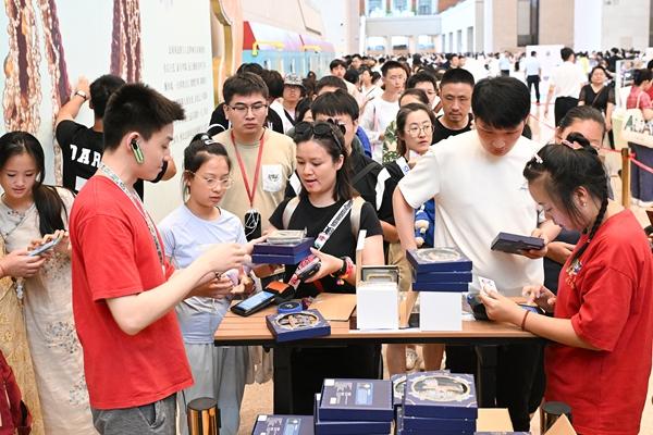 观众在中国国家博物馆排队购买凤冠冰箱贴。视觉中国供图
