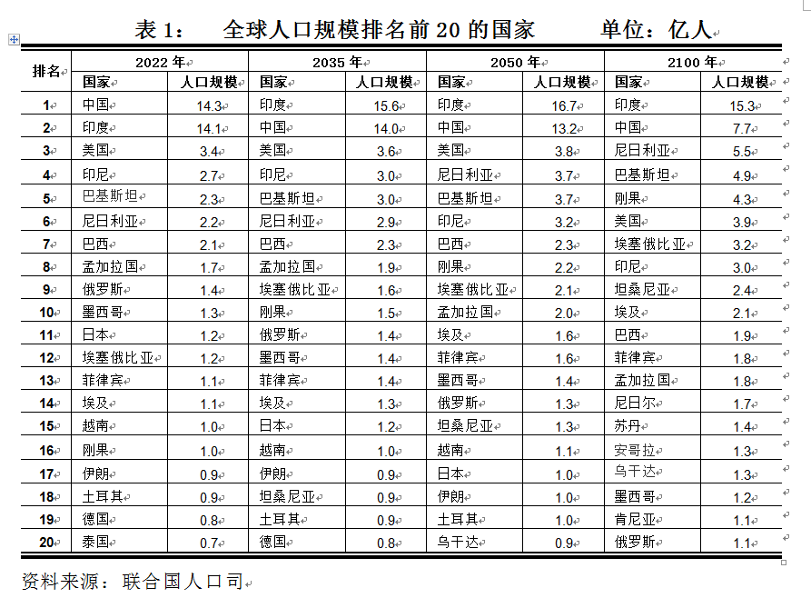 (三)从国别对比来看,我国人口规模优势逐步递减,全球第一人口大国将很快被印度取代,且与主要人口大国的差距呈缩小之势