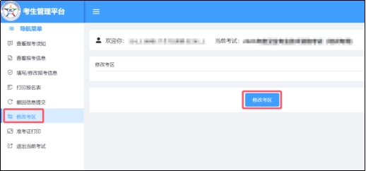 修改考区操作将会清空此项目下已经填写的报名信息,但不影响注册信息和基本信息。