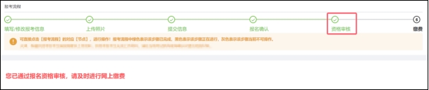 未开通网上缴费的考区,【资格审核】节点变为绿色即表示报名成功。