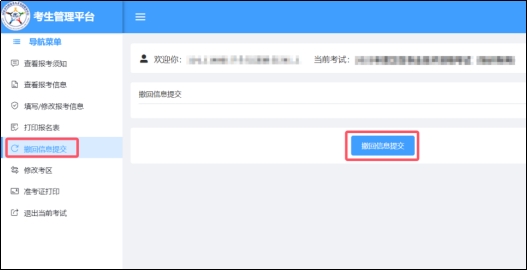 未进行报名确认的考生,可在报名确认结束前点击“撤回信息提交”,通过【填写/修改报考信息】功能修改相应信息,修改完成后须再次提交并重新打印报名表。